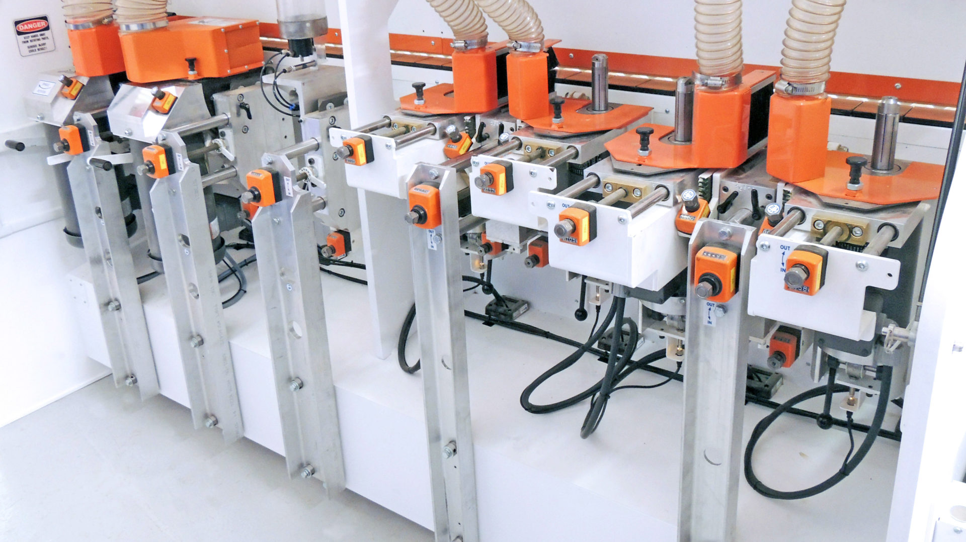 The A117 Shaper Sander can accommodate five or more shaping/sanding stations. Clockwise and counter-clockwise rotations are used on specific shapers to eliminate rejects and produce the highest quality finished part. The A117 Shaper Sander can be configured with one to three shaping units to shape outside edges and raised panels.