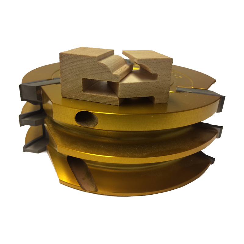 Cope and Stick Joinery with aluminum shaper bodies, custom profiled for specified pattern and rotation. These are not reversible or interchangeable.
