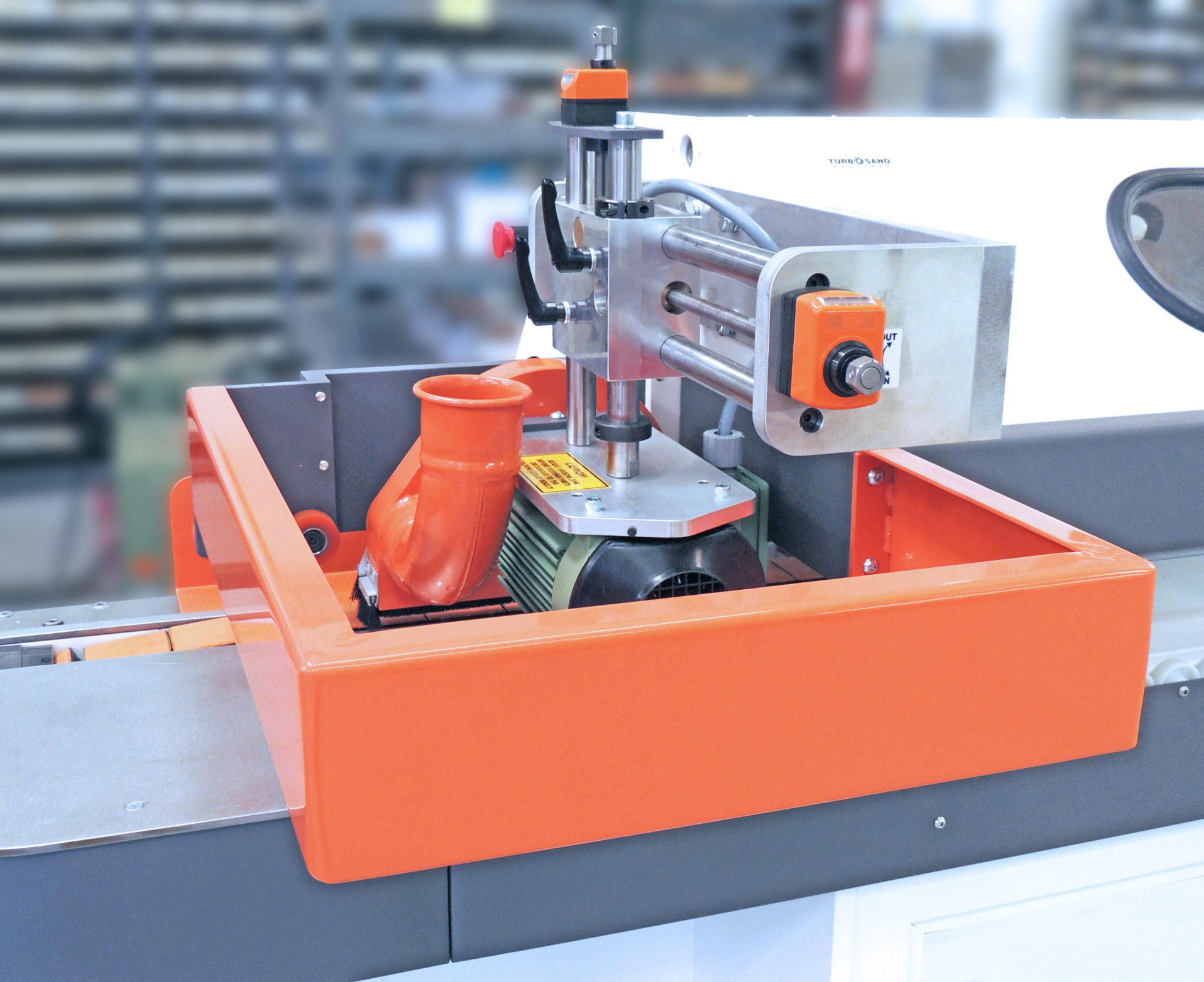 Shape the profile, sand it smooth and apply the dry-transfer finish foil on MDF consecutively in one continuous process. Stock is transported through the machine by a bottom-feed chain with special pads that grip the stock securely while it passes the stations. The L115 Edge Foiler has digital readouts and micro-point tilt at the stations.