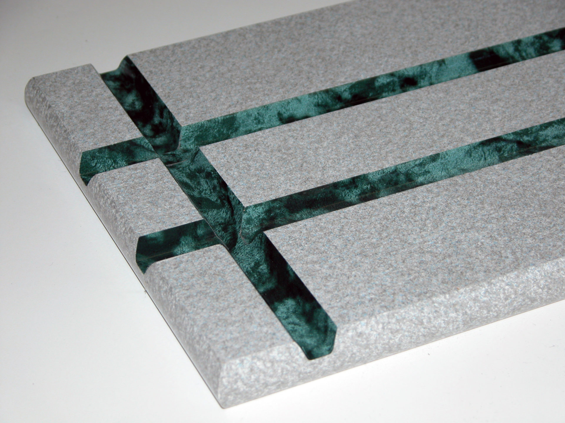 Cuts a single plough (bluff cut) to the desired profile in an MDF drawer front or similar component and then sands and applies transfer finish to the plough, all in one pass. It does not require handwork, spraying, wiping, clean-up, or drying time. Parts exit the machine ready to be assembled or shipped. Saves time and money.